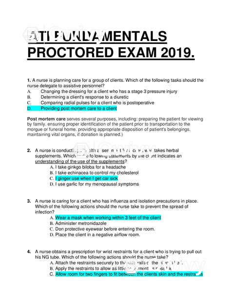 Free PDF ATI FUNDAMENTALS PROCTORED EXAM QUESTIONS Kindle Editon ManyBooks
